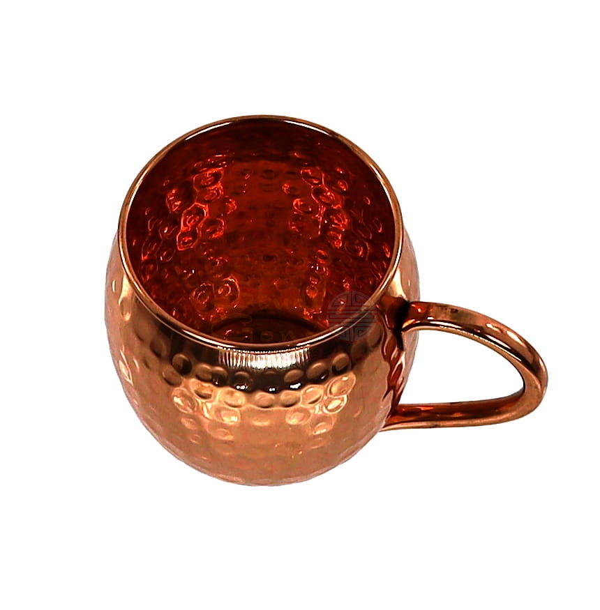Kubek wykonany jest w ponad 99% z miedzi. Drugim składnikiem jest cynk zapewniający naczyniu sztywność. Dzięki młotkowaniu woda ma kontakt z miedzią na większej powierzchni przez co szybciej się oczyszcza i filtruje.