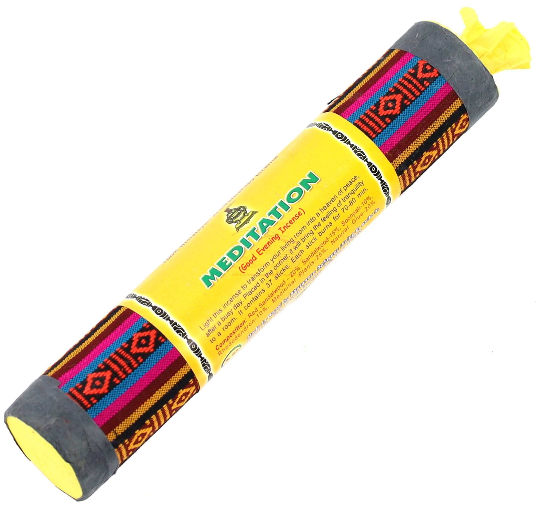Solidne, grube tekturowe opakowanie obciągnięte bhutańskim materiałem jest zamykane i otwierane przez skręcanie papierowego wentyla. Opakowanie zawiera 37 kadzideł długości 22 cm, palących się 70-80 minut każde. Kadzidła te są wytwarzane przez bhutańskich uchodźców żyjących w Nepalu.