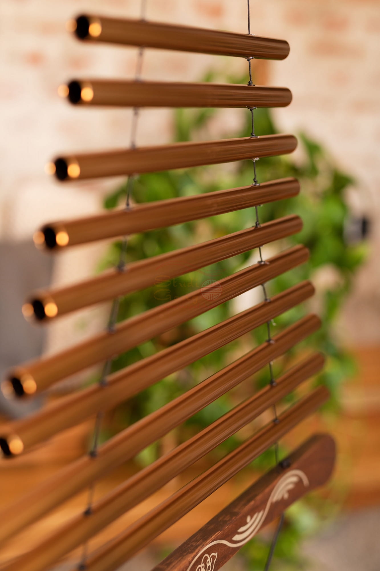 Rurki zawieszone są na solidnych nylonowych linkach, wyśrodkowanych w dwóch uchwytach z jesionu. Rurki wykonane są z odpornego na korozję aluminium i można na nich grać pojedynczo lub razem.