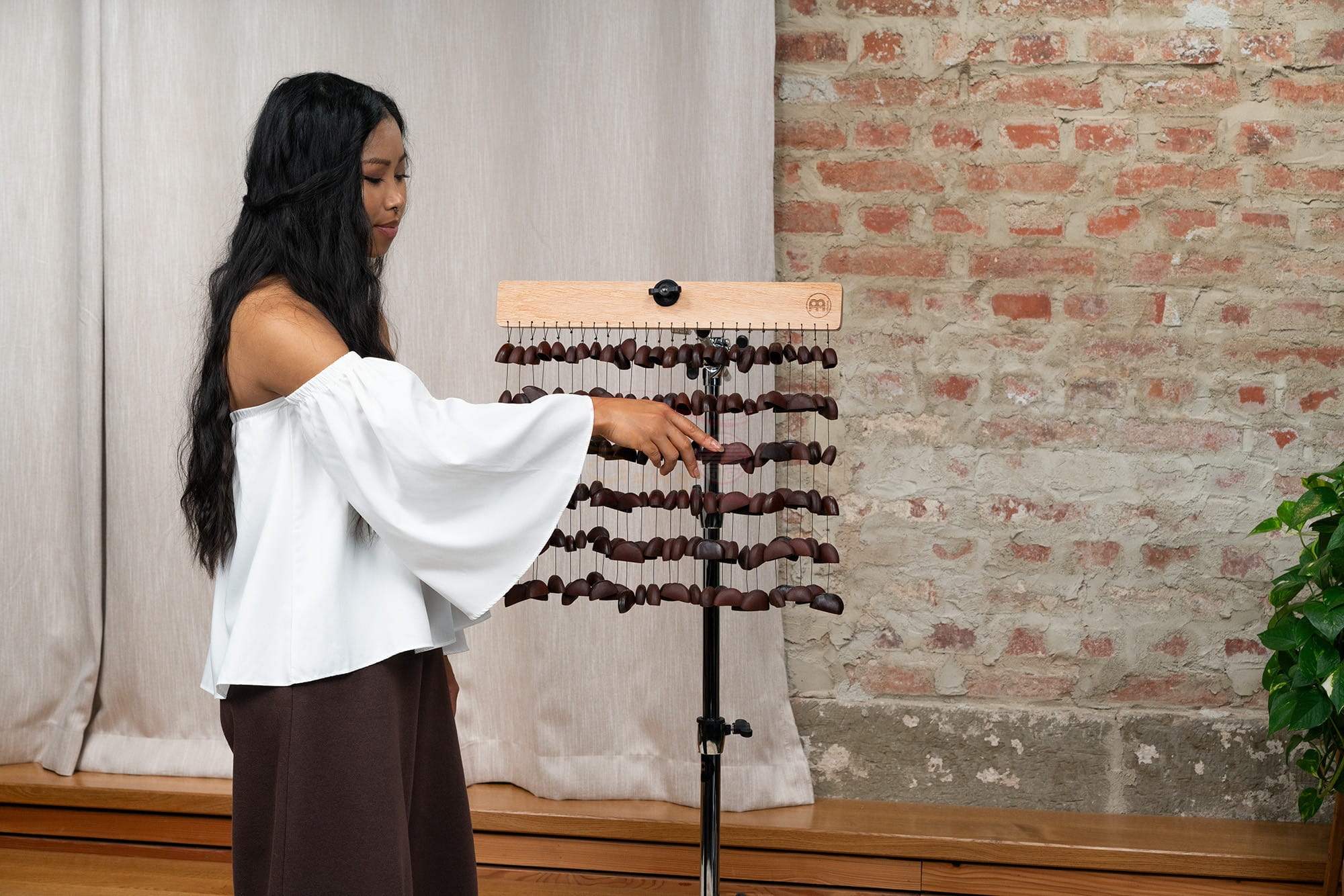 Łupiny orzechów Kenari, Bendo i Pangi, przymocowane do litego kawałka mahoniu, tworzą wyjątkowy, wszechstronny instrument. Na dzwonki Meinl Sonic Energy Mixed Seed Chimes gra się jak na typowych dzwonkach, ale oferują one zupełnie inną różnorodność brzmienia.
