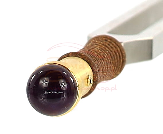 Nasadka wykonana ze stali nierdzewnej (nie niklowanej) pokrytej 24-karatowym złotem, optymalnie uzupełnia pracę z kamertonem przenosząc wibracje kamienia bezpośrednio na ciało z częstotliwością kamertonu.