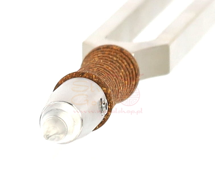 Nasadka wykonana ze stali nierdzewnej (nie niklowanej), optymalnie uzupełnia pracę z kamertonem przenosząc wibracje kamienia bezpośrednio na ciało z częstotliwością kamertonu.