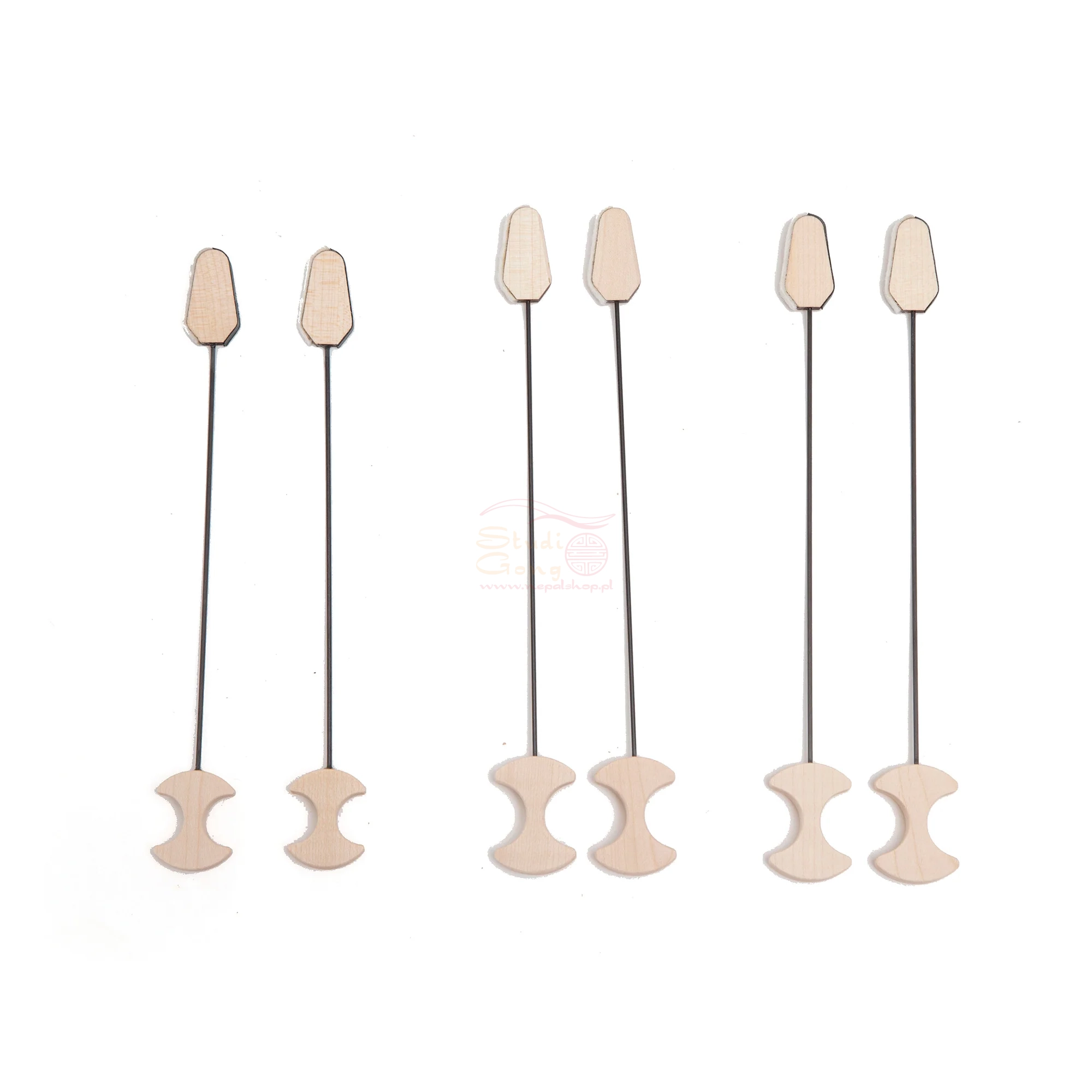 Pałeczki do gry na monochordzie w stylu perkusyjnym wykonane są z drewna klonowego (rękojeść i główka) oraz włókna węglowego (trzonek). Dzięki zastosowaniu tych materiałów pałeczki są sprężyste, lekkie i elastyczne. Gramy nimi chwytając je pomiędzy palcem wskazującym a serdecznym.