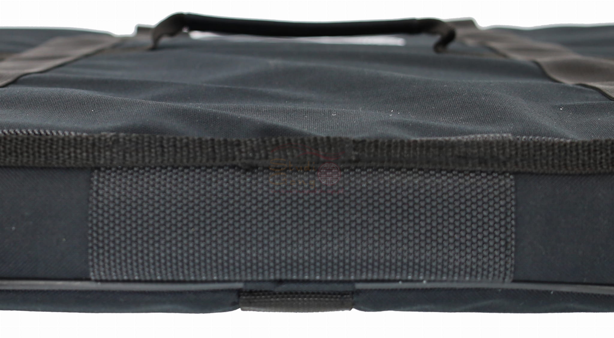 Uprząż: pas nośny z mechanizmem płynnej regulacji, gumowy stabilizator rozkładający siłę nacisku na ramię, stalowe karabińczyki - możliwość wypięcia pasa nośnego; rączki wszyte na stałe; gumowa stopka zabezpieczająca pokrowiec przed przetarciem.