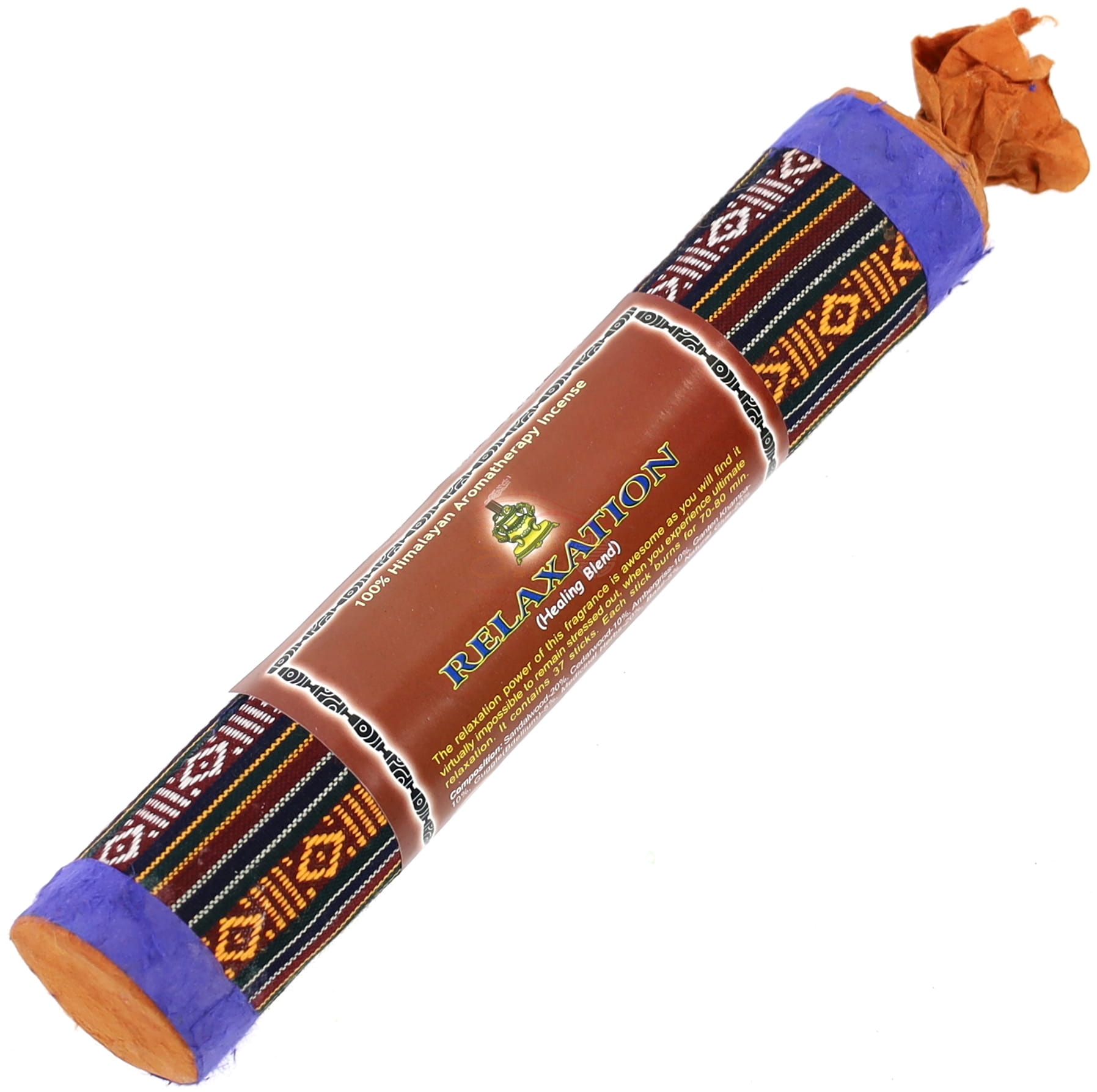 Solidne, grube tekturowe opakowanie obciągnięte bhutańskim materiałem jest zamykane i otwierane przez skręcanie papierowego wentyla. Opakowanie zawiera 37 kadzideł długości 22 cm, palących się 70-80 minut każde. Kadzidła te są wytwarzane przez bhutańskich uchodźców żyjących w Nepalu.
