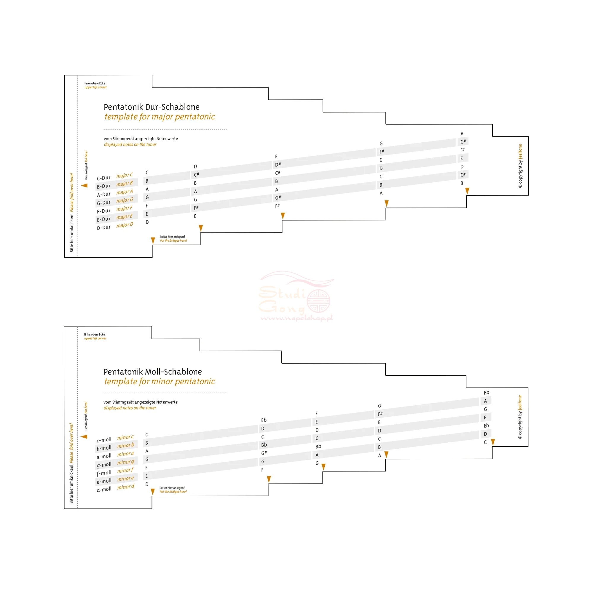 Szablon służy do strojenia melodycznych strun monochordu Monolina za pomocą pojedynczych mostków do durowej bądź molowej pentatoniki.